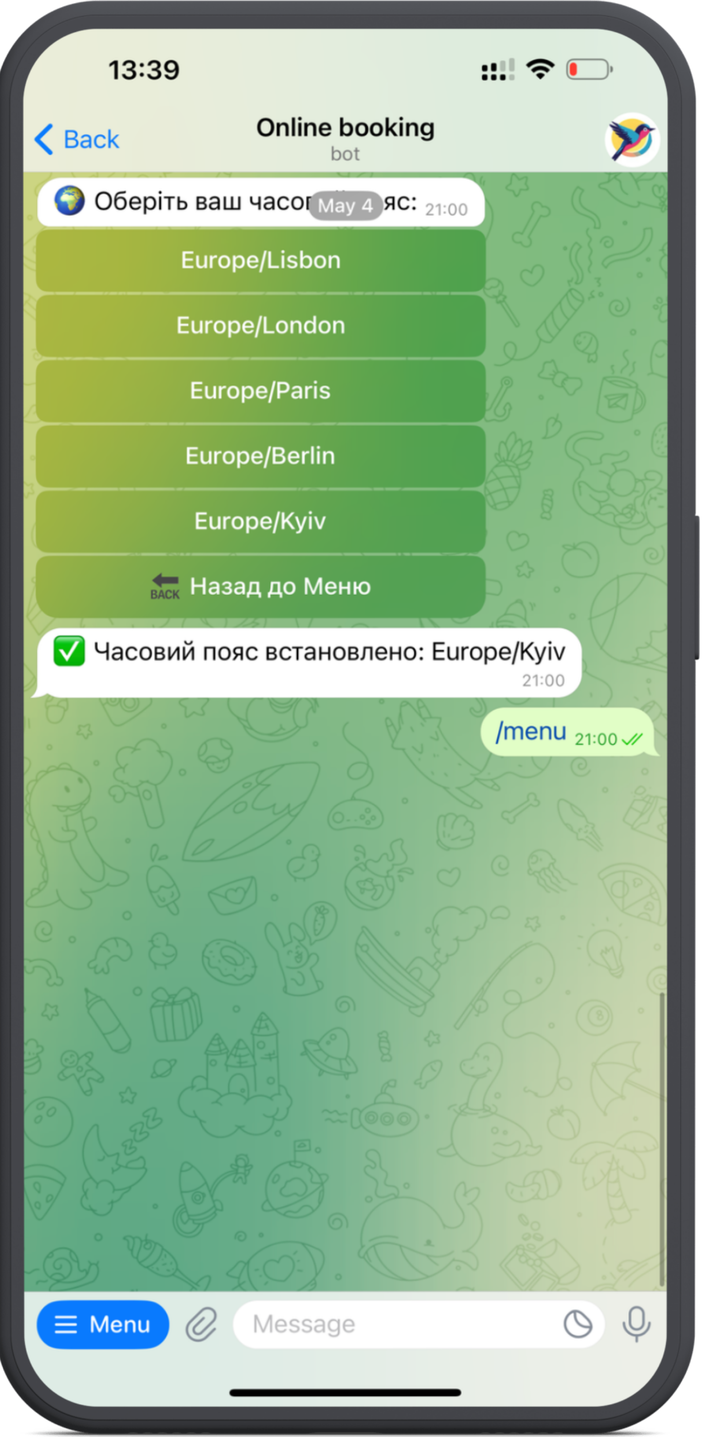 Empower small businesses with a seamless online booking experience directly through Telegram. It enables business owners to effortlessly set up their service offerings and available hours, while clients can conveniently schedule appointments to receive services